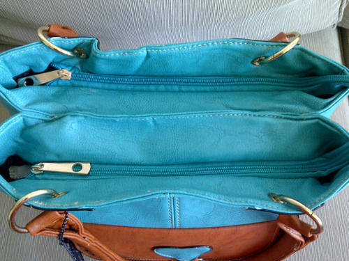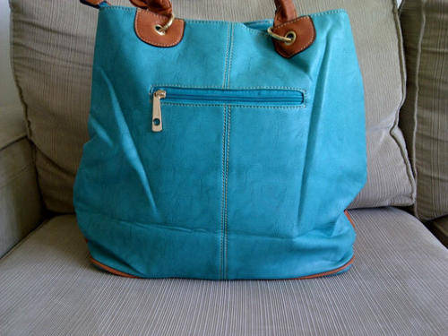 Stunning Ladies Blue/Tan/Brown PU Leather Handbag With Beautiful Detail & Design... Has 2 divided sections on the inside with plenty of place for everything you need, great summer colour...