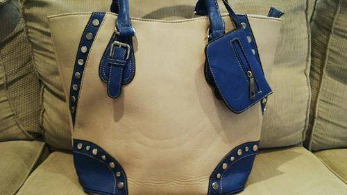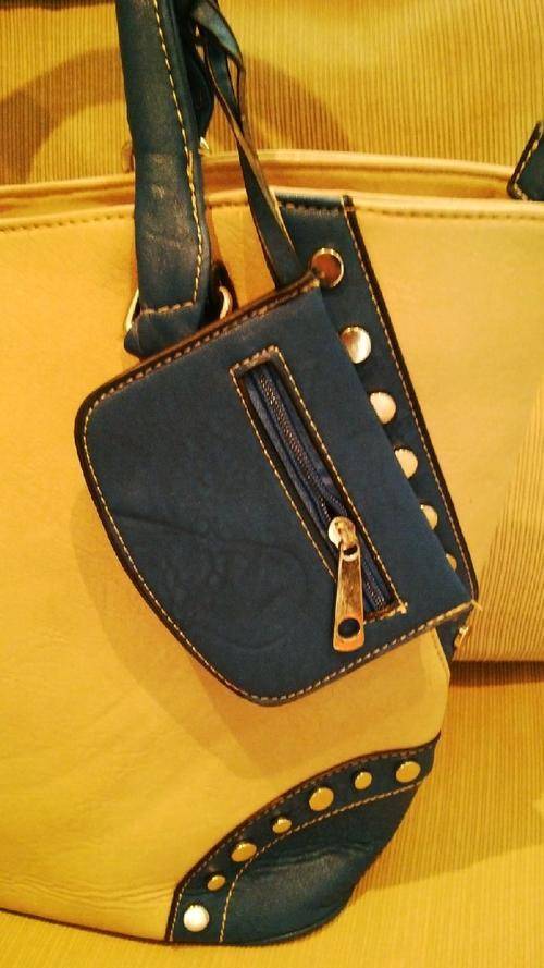 Stunning Ladies Cream/Blue 3pc PU Leather Handbag Set With Pretty Detail & Design...Beautiful Piece!... Comes with the big bag, a smaller sling bag and a coin wallet, great set, don't miss out...