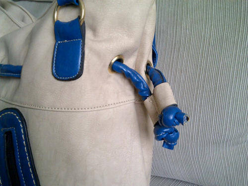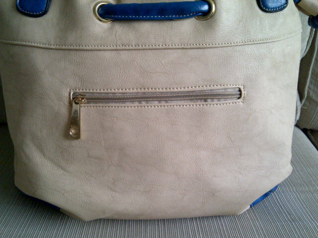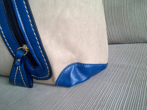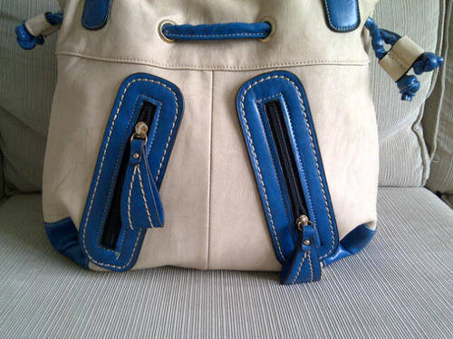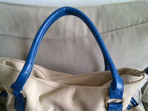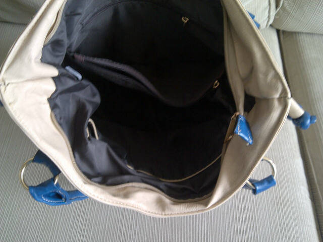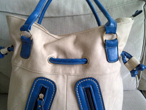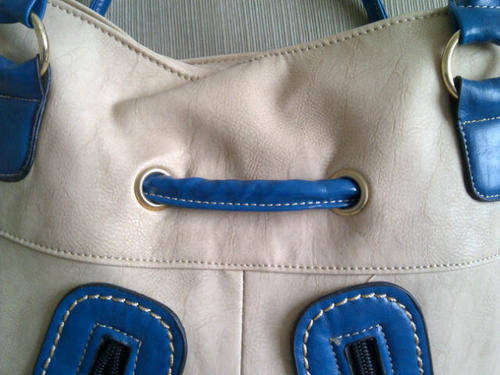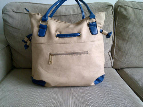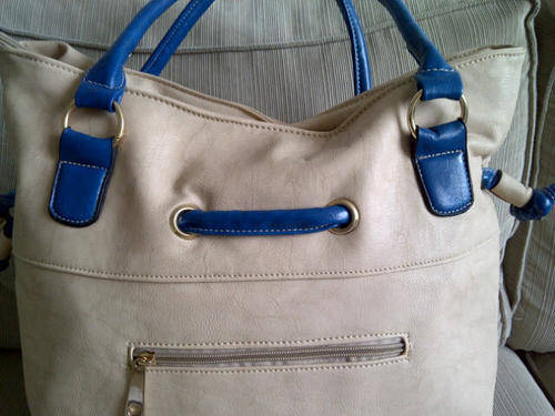 Stunning Ladies Cream/Tan/Blue PU Leather Handbag With Pretty Detail & Design...Beautiful Piece!...