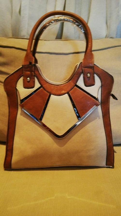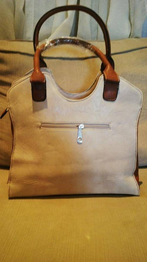 Stunning Ladies CREAM/TAN PU Leather Handbag With Pretty Detail & Design...Beautiful Piece!… This bag is small, cute and has 2 divided sections on the inside and has a fake flap pocket in the front of the bag that lifts up, don't miss out, only one available in this colour...