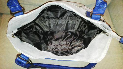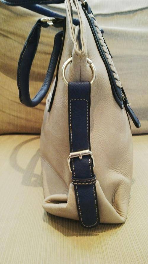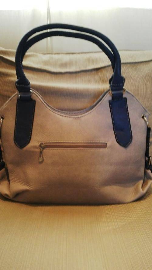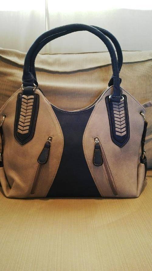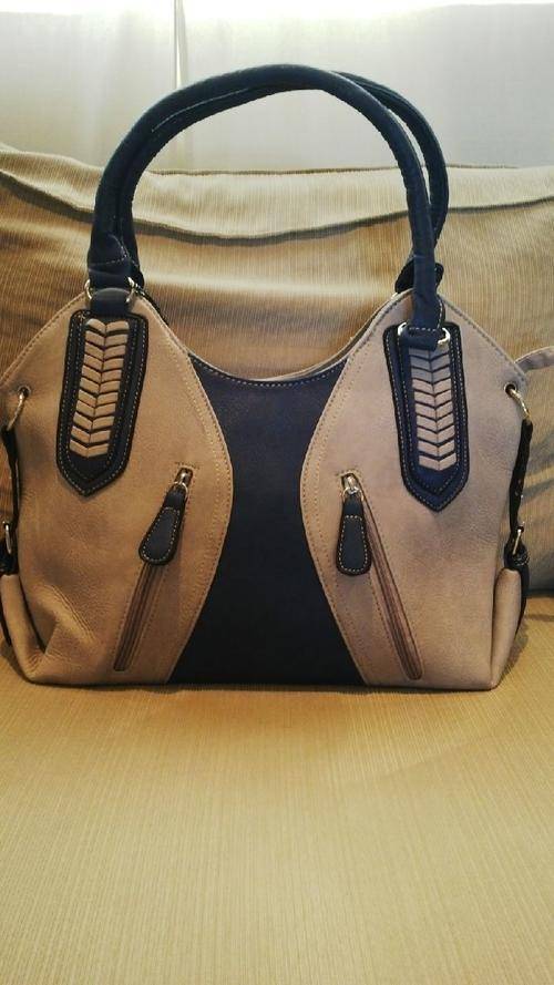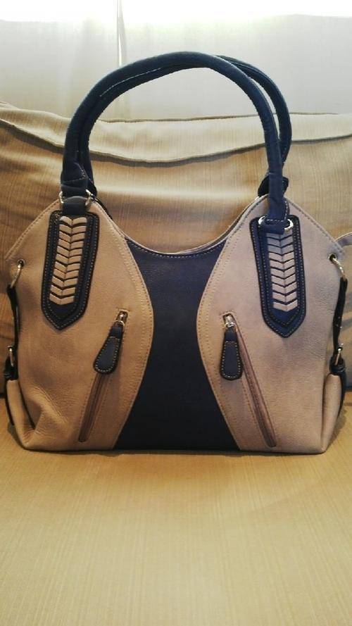 Stunning Ladies Grey/Blue PU Leather Handbag With Pretty Detail & Design...Beautiful Piece!... Has 2 zippered compartments on the front and cellphone compartments on the inside…