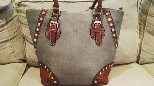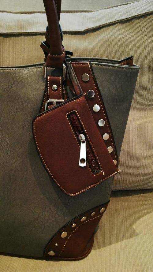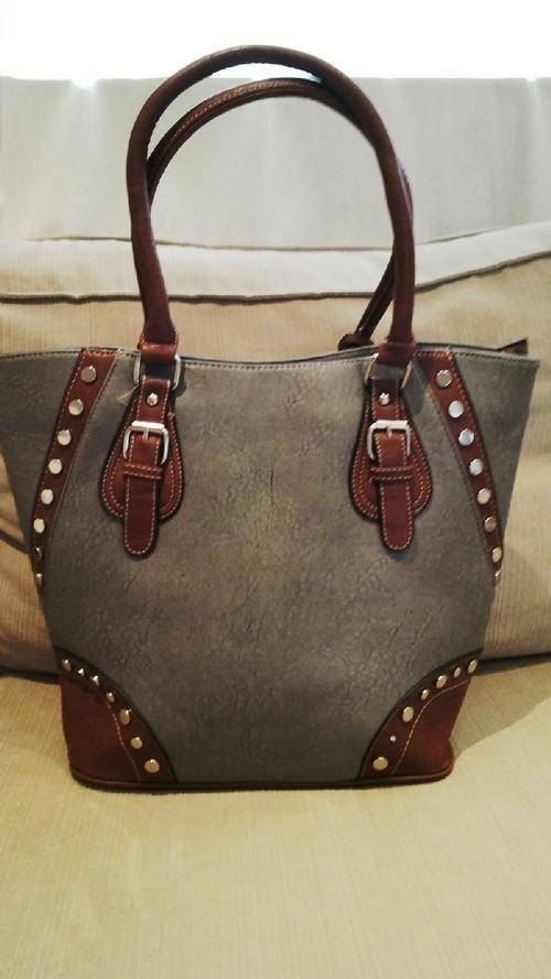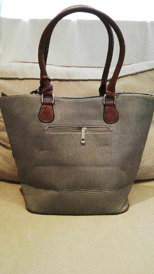 Stunning Ladies Grey/Brown 3pc PU Leather Handbag Set With Pretty Detail & Design...Beautiful Piece!... Comes with the big bag, a smaller sling bag and a coin wallet, great set, don't miss out...