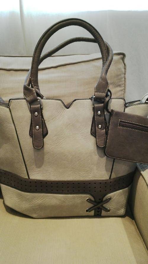 Stunning Ladies Light/Dark Grey 3pc PU Leather Handbag Set With Pretty Detail & Design...Beautiful Piece!... Comes with the big bag, a smaller sling bag and a coin wallet, great set, don't miss out...