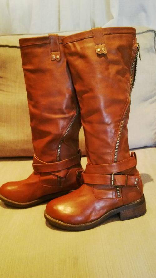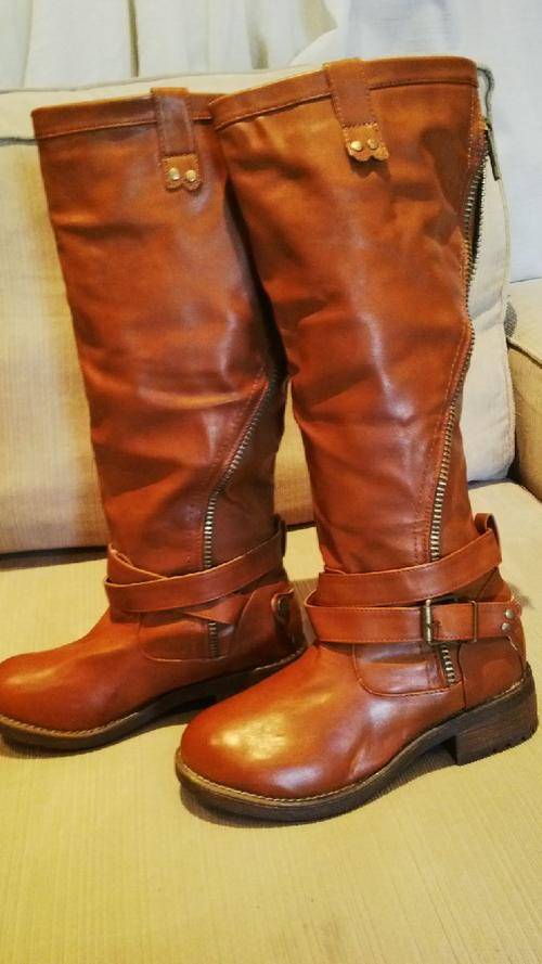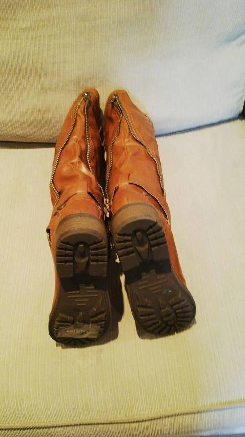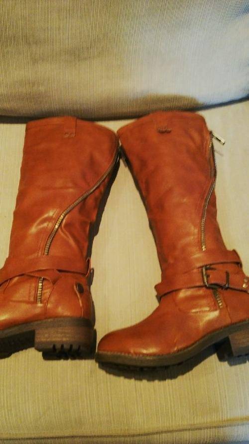 *Stunning Ladies Long TAN Leather Like Boots With Funky Design*Size 5, 5 1/2*BEAUTIFUL*BRAND NEW*