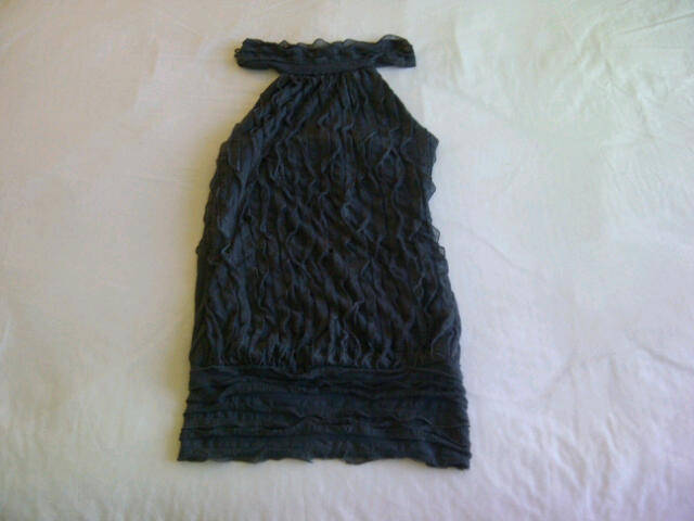Stunning Ladies Ruffle Style Neckline Dark Grey Top with open back, BEAUTIFUL!!
