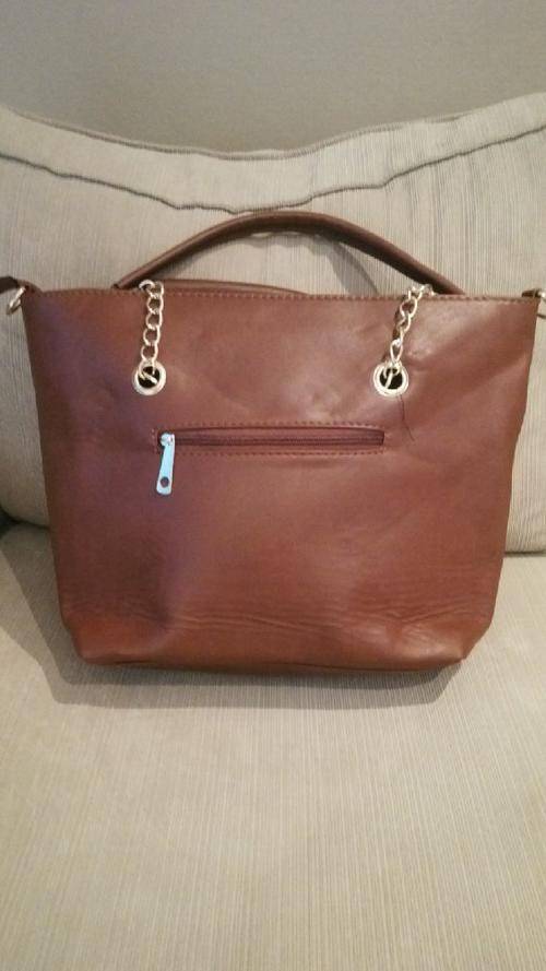 Stunning Ladies 2pc TAN/GOLD PU Leather Handbag With Pretty Detail & Design...Beautiful Piece!...