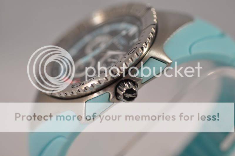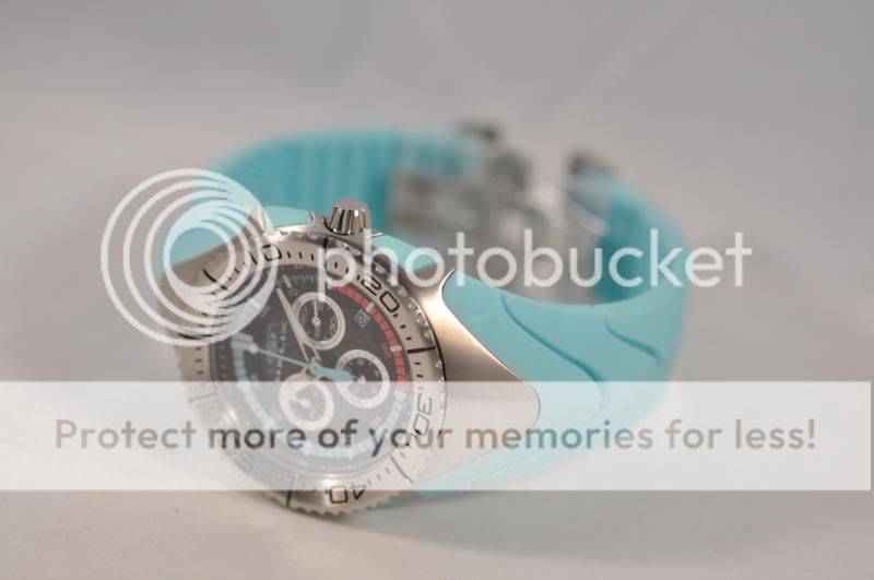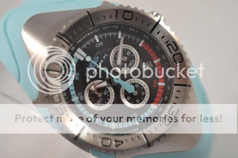 MODEL # HX400-02L01S Black carbon fiber dial, Precision Swiss quartz, Chronograph movement (powered by battery), Sugical stainless steel case, Screw-down caseback, Unidirectional rotating bezel visual timer, Scratch-resistant sapphire crystal, Water resistant to 100 meters/330 feet/10ATM, Silvertone Super Luminova® hands. Blue luminous seconds hands, Watertight screw-down crown, Blue chronograph pushers, Tachymeter on outer dial in black, Blue polyurethane rubber band, Push-button double deployment clasp, Date calendar at 4 o'clock, Case is 44mm wide (excluding crown) and is 13mm thick, Band - 22mm wide. will fit up to 9 inch wrist