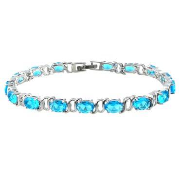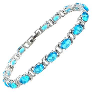 STUNNING OVAL CUT AQUAMARINE TENNIS BRACELET IN 18CT WHITE ROLLED GOLD