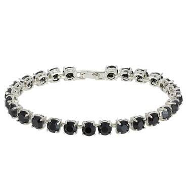 STUNNING ROUND CUT BLACK ONYX TENNIS BRACELET IN 18CT WHITE ROLLED GOLD