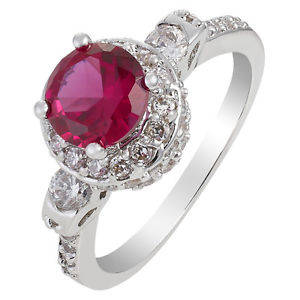 **STUNNING ROUND CUT RUBY RING SET IN 18CT WHITE ROLLED GOLD**