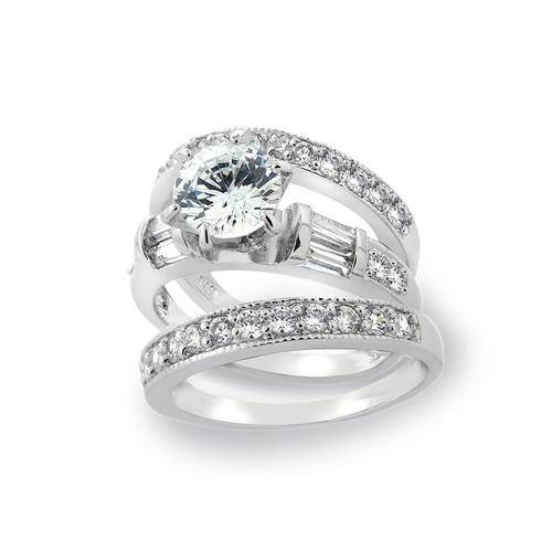 **STUNNING! SOLID STERLING SILVER DESIGNER TRIPLE WEDDING RING SET Size 6