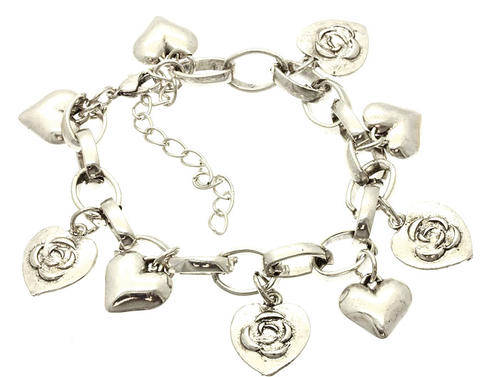 ***STUNNING***STUNNING*** SILVER HEARTS AND ROSE CHARM BRACELET