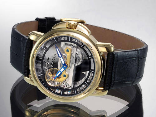 TRENT BLACK/GOLD SKELETON AUTOMATIC CLOCK !!!