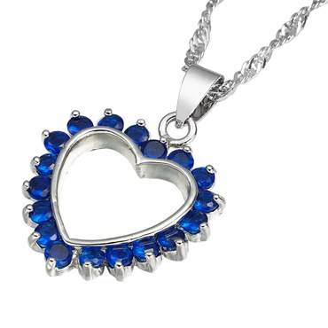 **STUNNING WHITE GOLD BLUE SAPPHIRE HEART PENDANT WITH CHAIN**