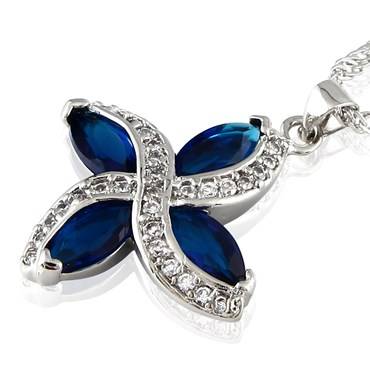 **STUNNING WHITE GOLD BLUE SAPPHIRE MARQUISE PENDANT WITH CHAIN**