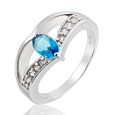 **STUNNING WHITE ROLLED GOLD AQUAMARINE RING**