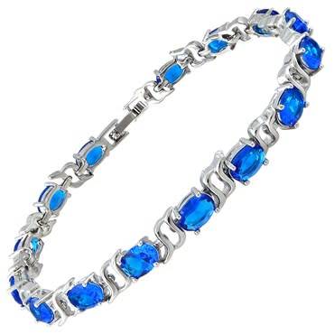 **BEAUTIFUL BLUE SAPPHIRE TENNIS BRACELET SET IN WHITE ROLLED GOLD**