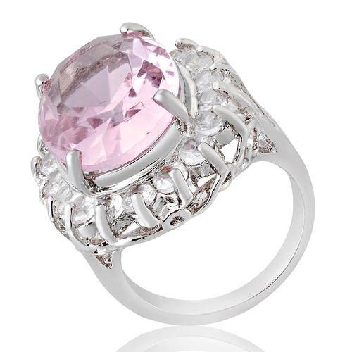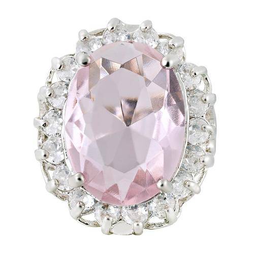 **STUNNING WHITE GOLD OVAL CUT PINK SAPPHIRE & SIMULATED DIAMOND RING**