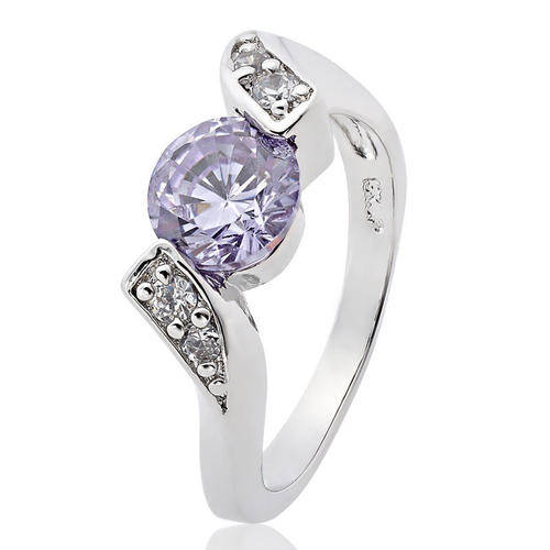 **STUNNING ROUND CUT TANZANITE RING SET IN WHITE ROLLED GOLD **