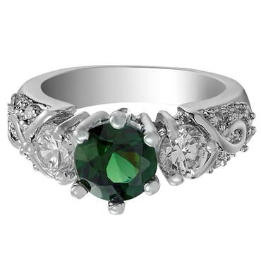 **STUNNING WHITE GOLD ROUND GREEN EMERALD & DIAMOND RING**