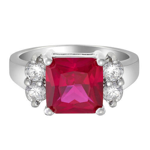 **STUNNING WHITE GOLD SQUARE CUT GARNET RING **