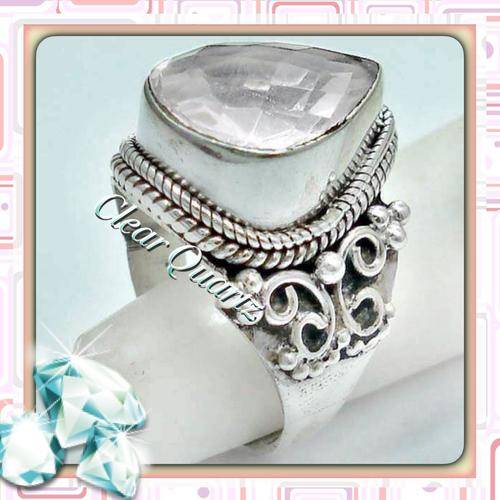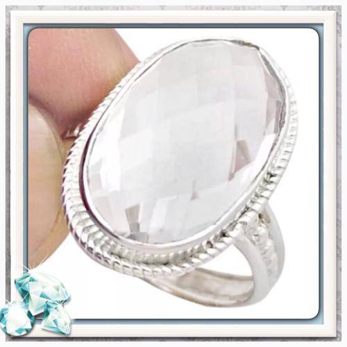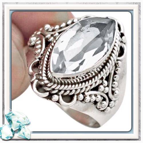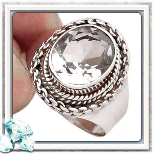 ***STUNNINGLY DIFFERENT***DIAMANTÈ GEMSTONE SILVER FASHION RING SIZE ADJUSTABLE