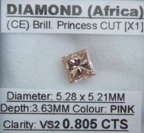 **SUPER RARE* [0.805ct] **PINK** PRINCESS CUT [VS2] DIAMOND @ R1 NO RESERVE [50K VALUE] - BUY SAFE