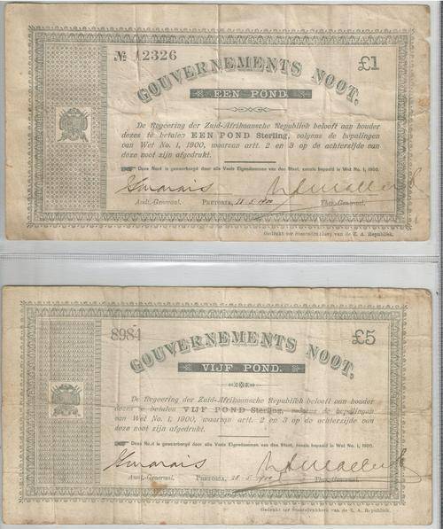 ** SUPER RARE!!! ** GOUVERMENTS NOOT BUNDLE ** EEN & VIJF POND ** PRETORIA ISSUE ** {CVR2000}