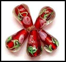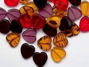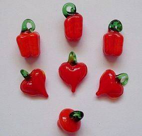 7x Glass Red Peppers,Hearts, Mushrooms 15-20mm