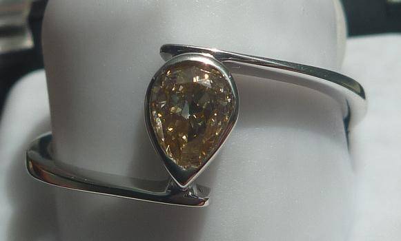 The diamond is spectacular, its set in a stunning new pattern with a diamond that has a lovely natural colour. Has a tiny flaw at the bottom thats not noticable.