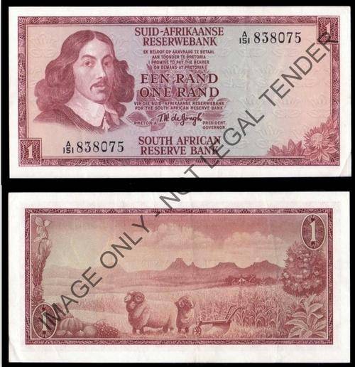 #  T W de JONGH  - One Rand (Afr/Eng/)  -  1967 - 1st ISSUE  -  A151  -  A/Unc  #