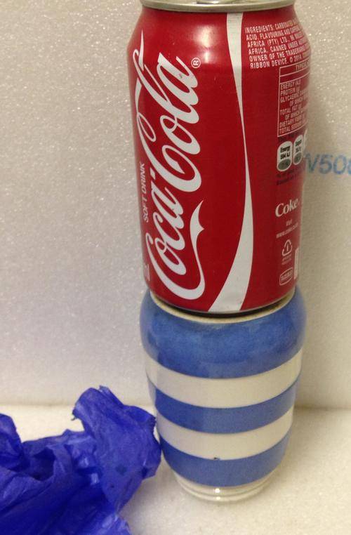 1 SALT POT-POT BLUE AND WHITE STRIPE MARKED SALT IN BLACK -
