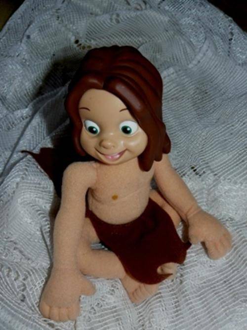 Happy "smiley face" non-breakable TARZAN boy toy, soft fabric body and PRETTIEST LITTLE big eyed SMILEY vinyl head that turns. Quality item made by Mattel for Disney!!. Clean and in excellent condition. Great collector's item!!!, HE IS ADORABLY CUTE, AND I THINK HE KNOWS IT :-).