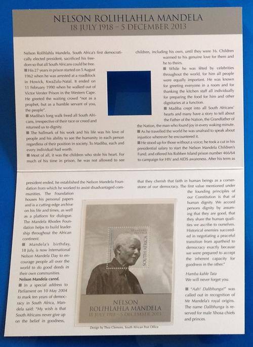 TWO 2008 MANDELA BIRTHDAY STAMPS PLUS 2013 COMMEMORATIVE STAMP FOLDER