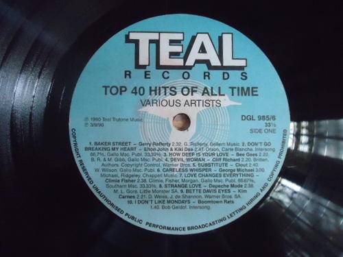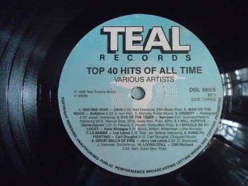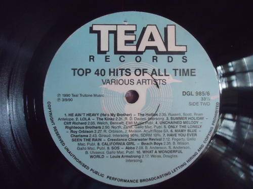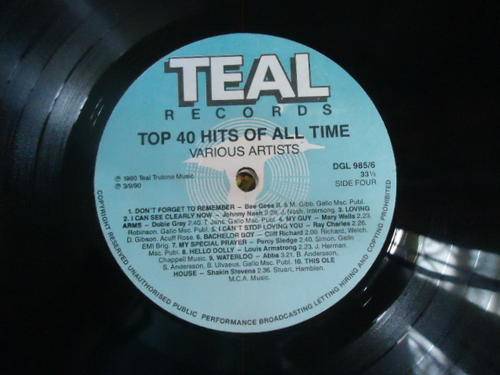 ON OFFER IS THIS "TOP 40 HITS OF ALL TIME" 1990 TEAL DOUBLE STEREO GATEFOLD LP SET