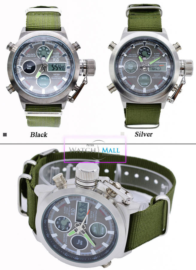YOUR BID IS FOR THE GREEN CANVAS SILVER CASE WATCH