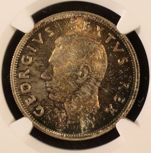 "TOP POP" UNION OF SOUTH AFRICA 1950 HALFCROWN GRADED MS65 BY NGC