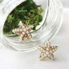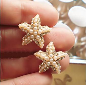 "Tropical island" Starfish earrings - Gold, pearl and diamante earrings