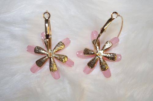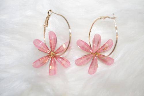 ***True Grace Accessories*** Pink Six Petal Flower Hoop Earrings