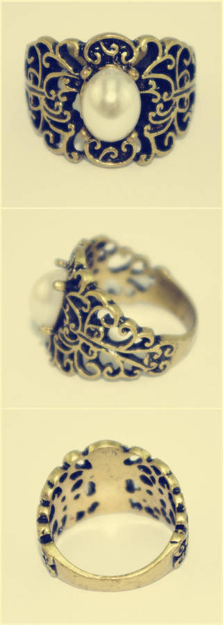 ***True Grace Accessories*** Retro Palace Vintage Hollow Bronze Ring (White)