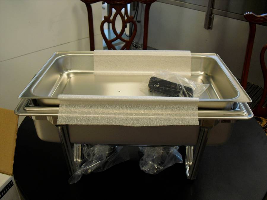 Supplied complete with one Deep heavy gauge stainless steel water pan, heavy gauge stainless steel deep food pans and two fuel holders.