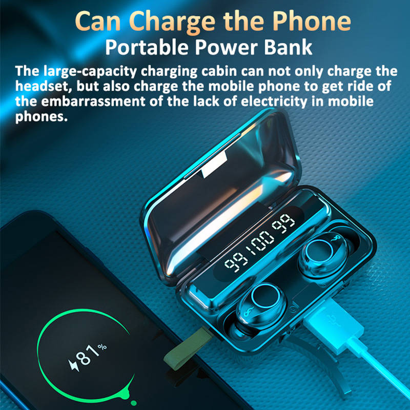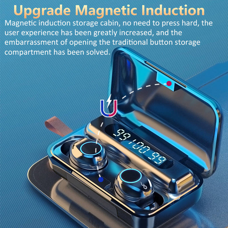 Earphone charging: Put the earphone in the charging compartment and close the lid, the earphone will automatically charge, the earphone will light upred when charging, and turn off when fully charged.