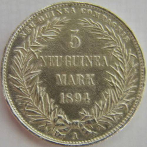 Ultra Rarity - Silver German New Guinea 1894A 5 Mark Crown AU+