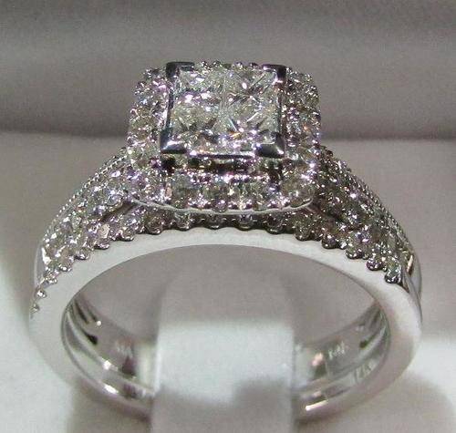 **ULTRA SPARKLY [R65418]** PRINCESS BRIDAL [1.275ct] DIAMOND RINGS [7.066g] WHITE GOLD - BUY SAFE