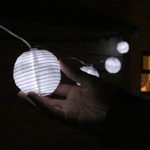 This set includes: 10 nylon Lantern balls, 10 white LED lights, 1 solar panel with a stake to push it into grass or soil, light sensor &
