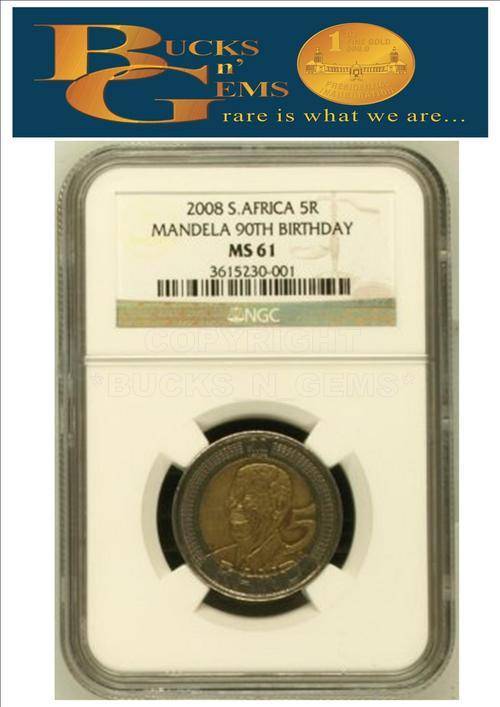 2008 MANDELA 90TH BIRTHDAY R5 COIN R5 MS61 -