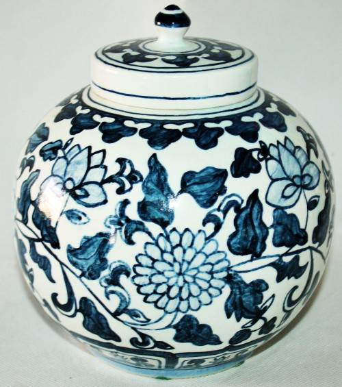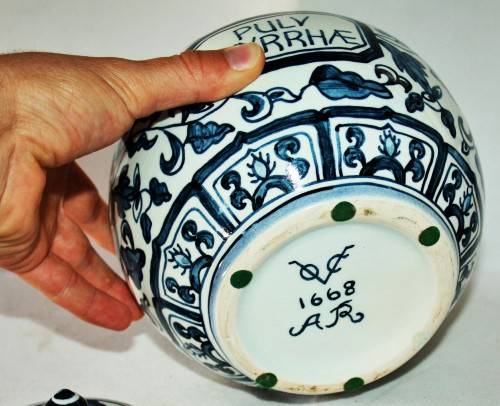 *VOC*UNUSUAL HAND PAINTED VOC PORCELAIN CONTAINER WITH LID !