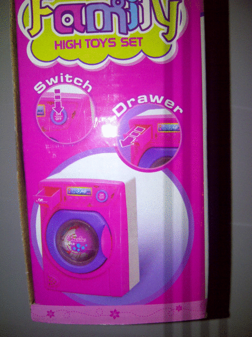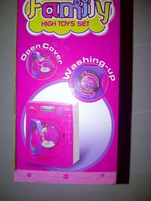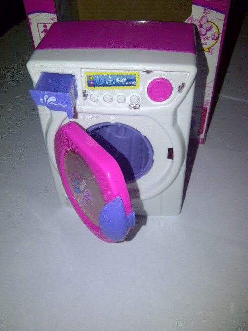 Children Love these washing machines. Has an on/off switch, the drawer opens as well as the front cover. Requires 2 AA batteries (not included)