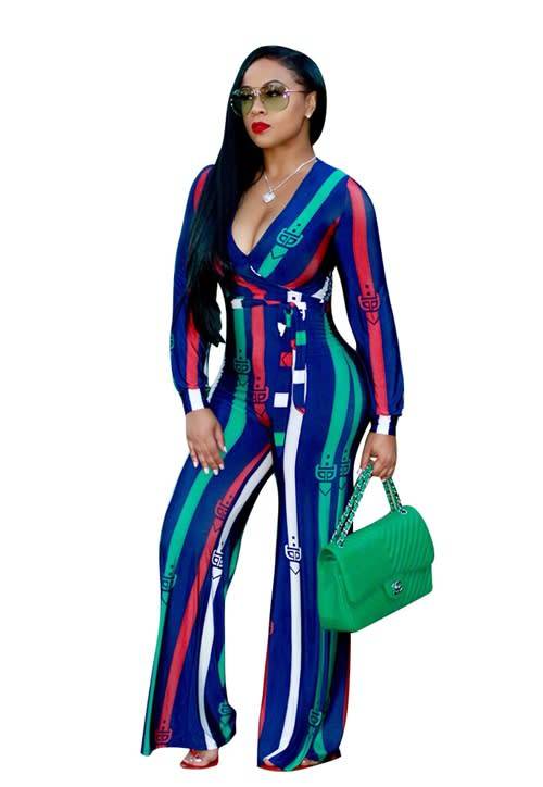 *WILD ROSE* Green Detail Striped V Neck Jumpsuit - S/M/L/XL