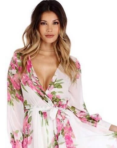 *WILD ROSE* Pink Floral Print Wrapped Long Boho Dress - S/M/L/XL/2XL/3XL *WILD ROSE* Pink Floral Print Wrapped Long Boho Dress - S/M/L/XL/2XL/3XL *WILD ROSE* Pink Floral Print Wrapped Long Boho Dress - S/M/L/XL/2XL/3XL